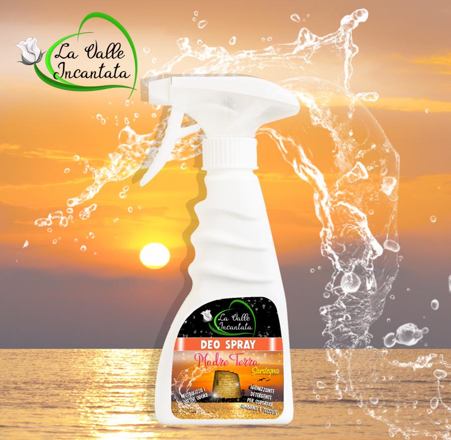 Deo spray "Madre Terra" per detergere, profumare eigienizzare ambienti etessuti. Non copre i cattivi odori ma bensì li neutralizza